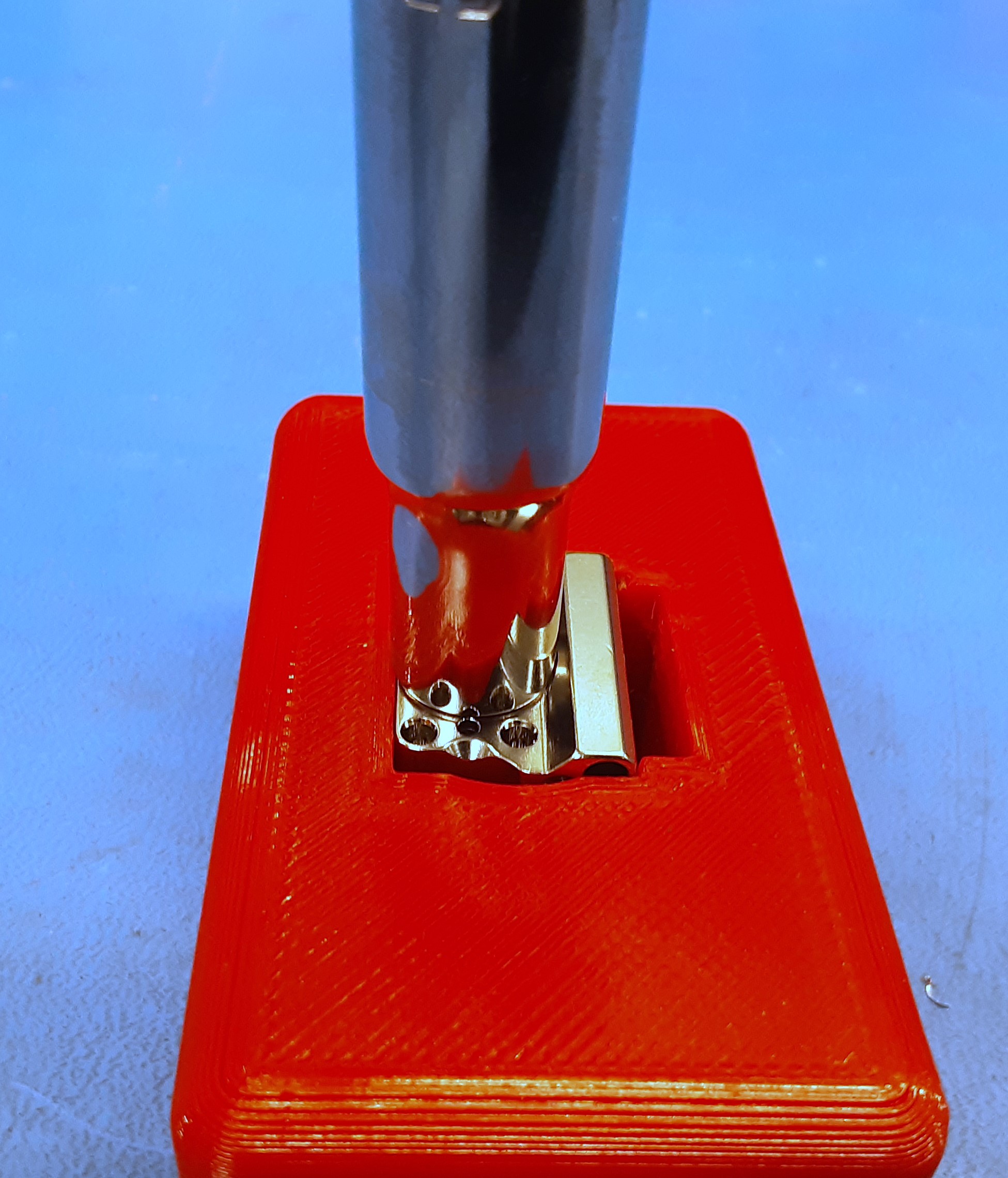 2B) Screw PP-MP0339 into PP-MP0337 and place in the red jig block.