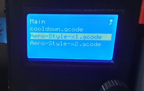 Two Meteor tool heads can be tested at once. If doing this do not use the thermistor jumper and plug in two tool heads. Then select “Aero-Style-x2.gcode”